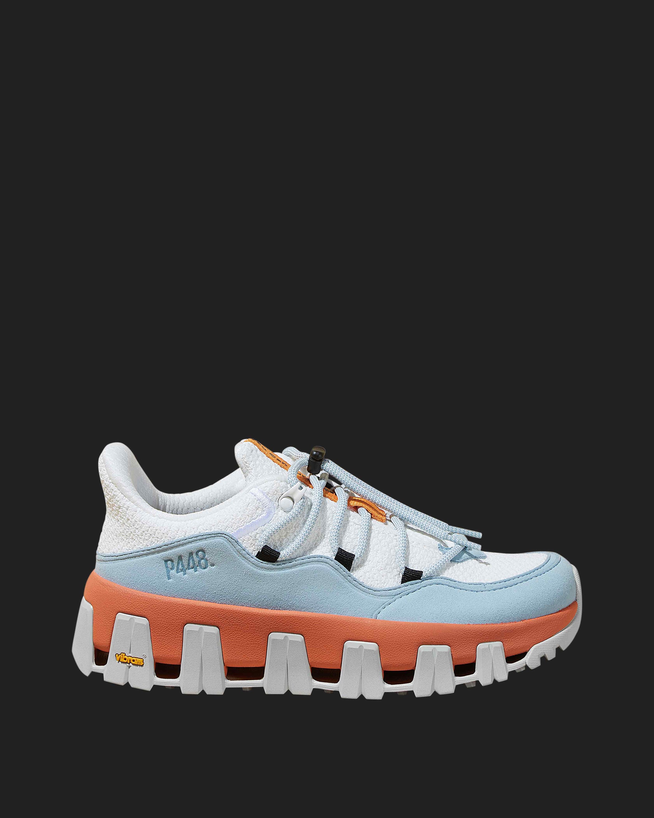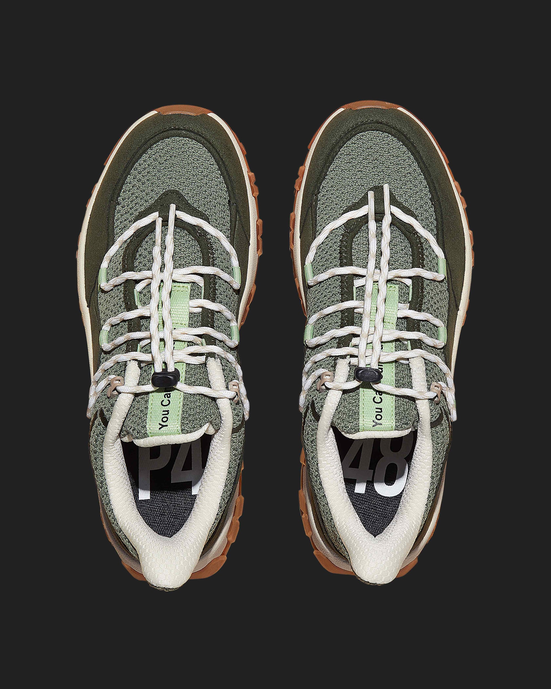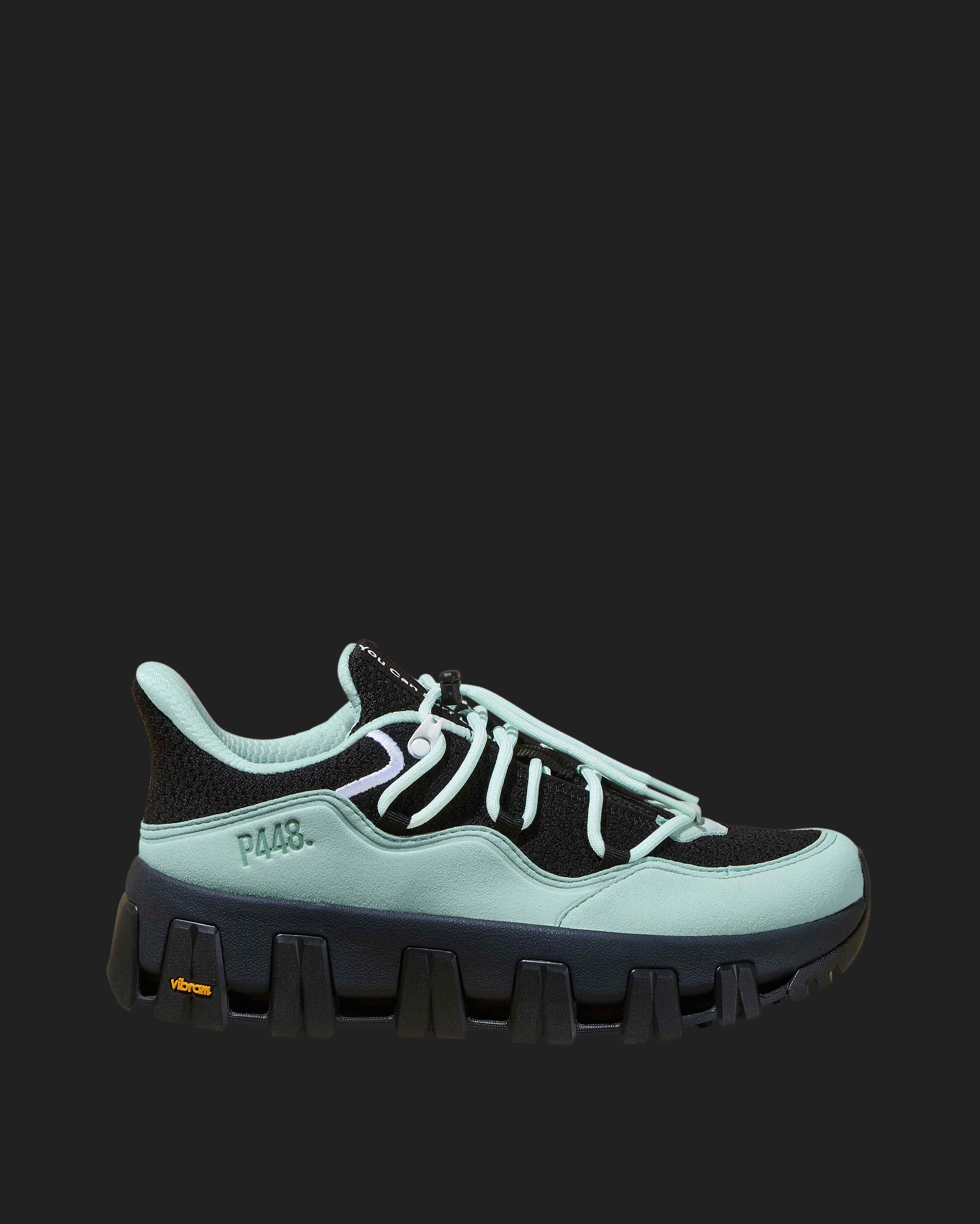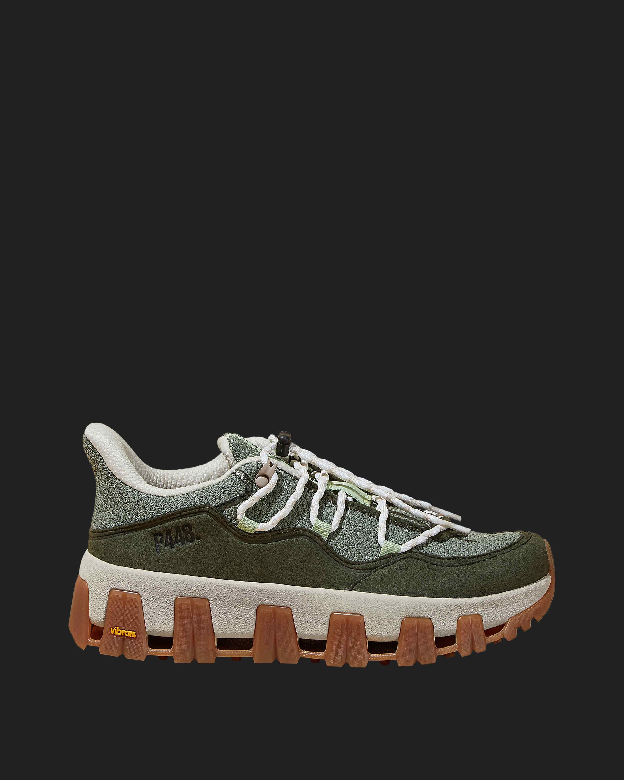 A P448 x Vibram® collaboration hiker crafted from bio-based materials with ergonomic comfort and rugged details. Adventure awaits.
