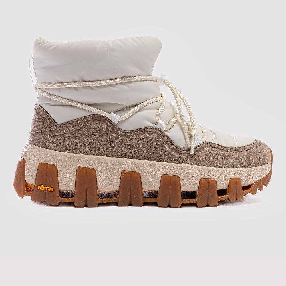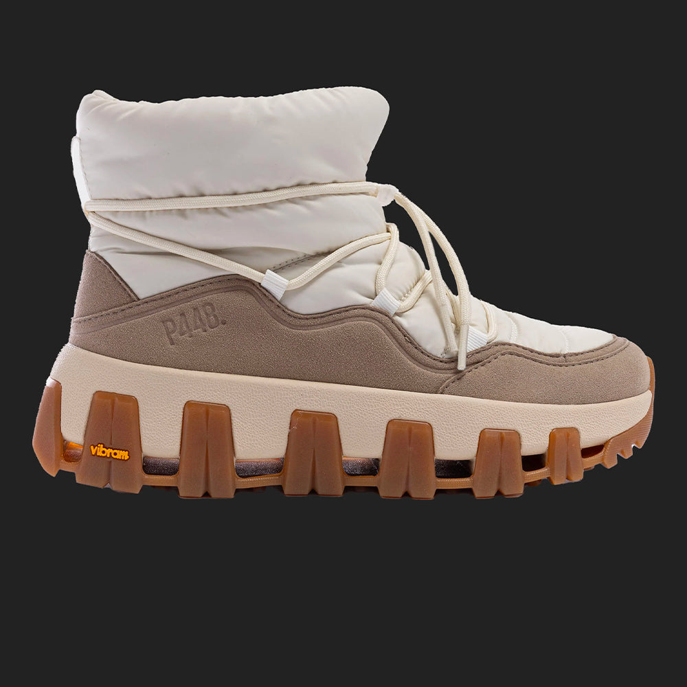 A P448 x Vibram®️ collaboration boot crafted from bio-based materials with ergonomic comfort, cold-weather design and adventure-ready bungee laces. Time for après.
