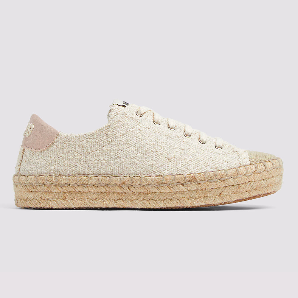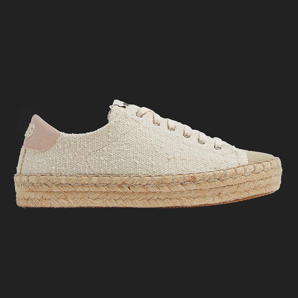A P448 espadrille updated with a platform sole, canvas material and rope laces. Consider this vacation in sneaker form.
