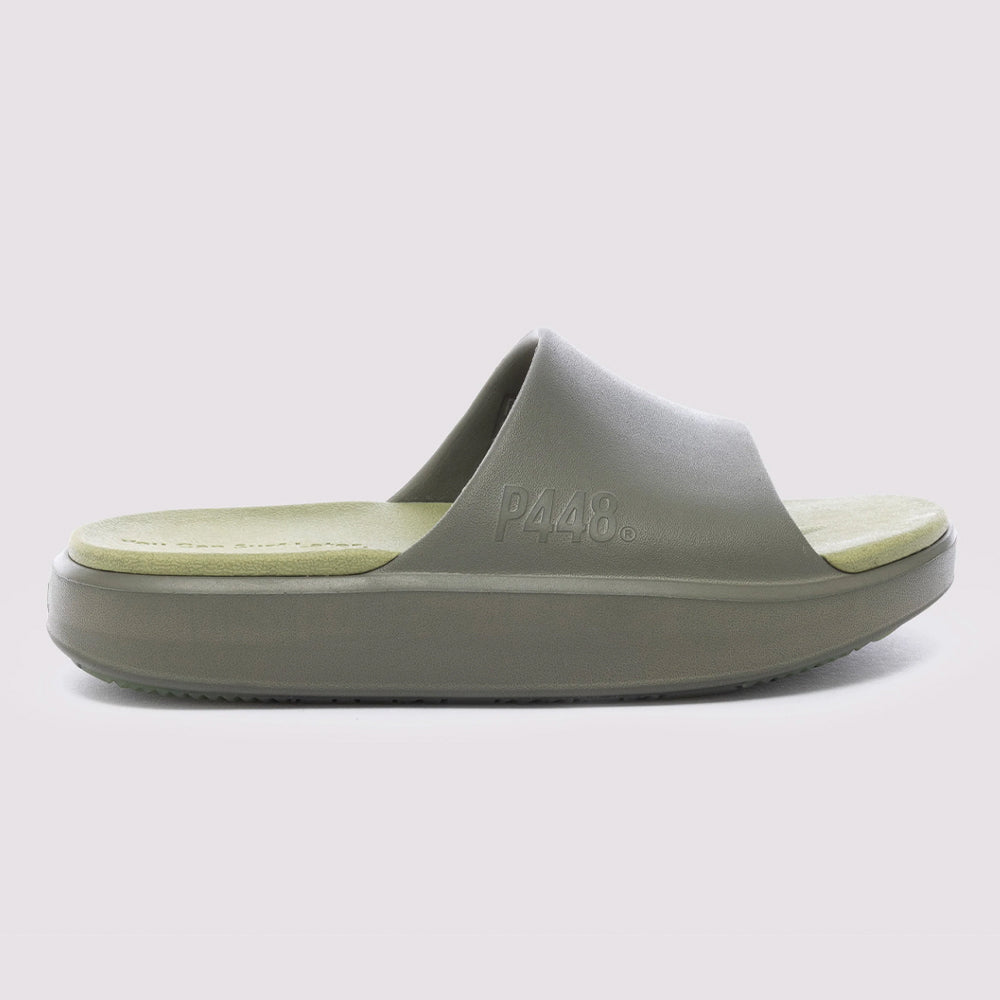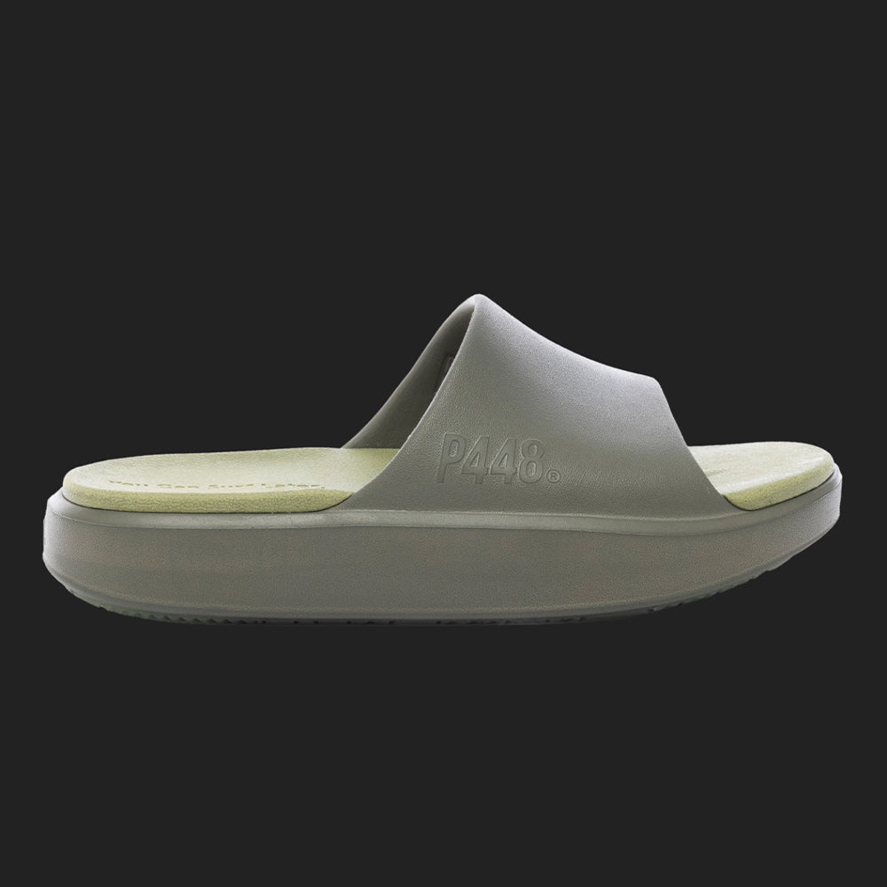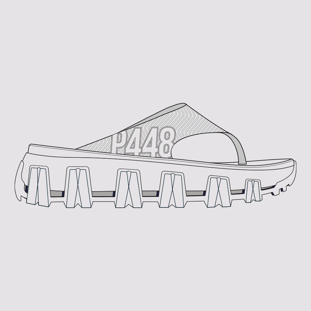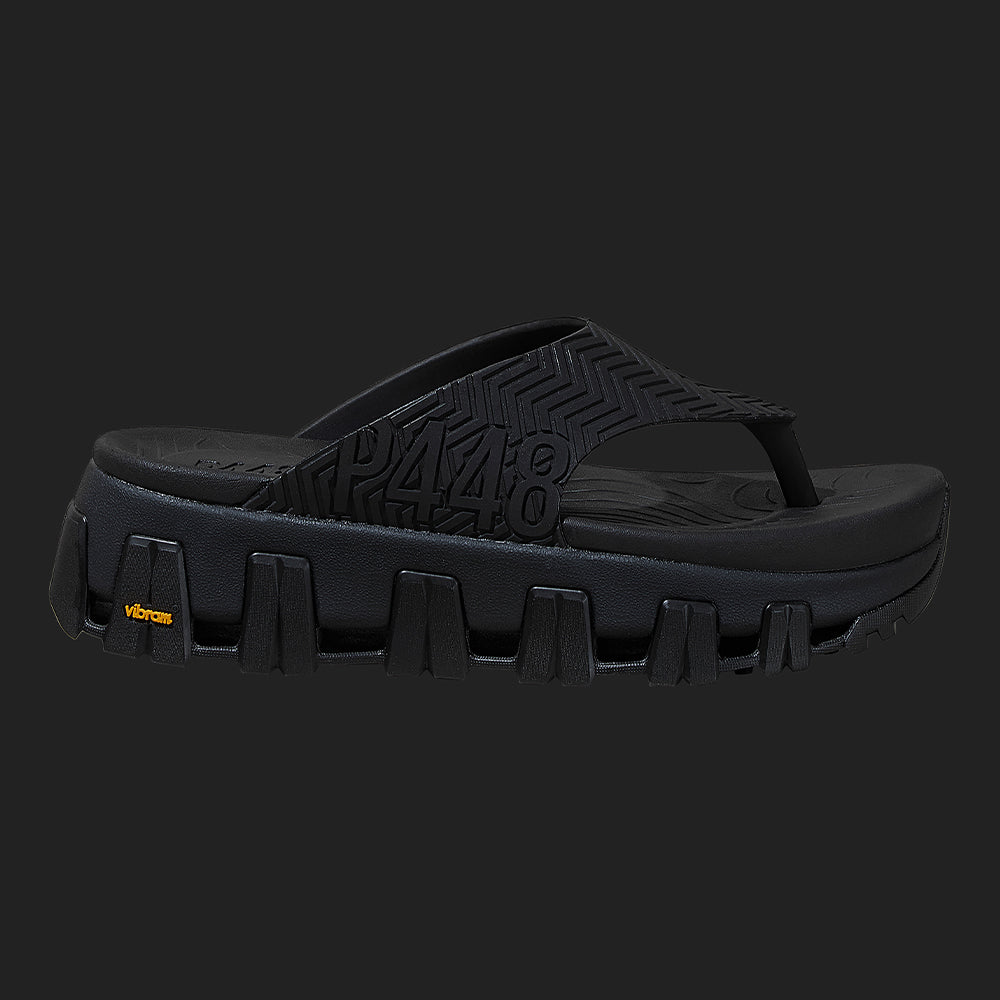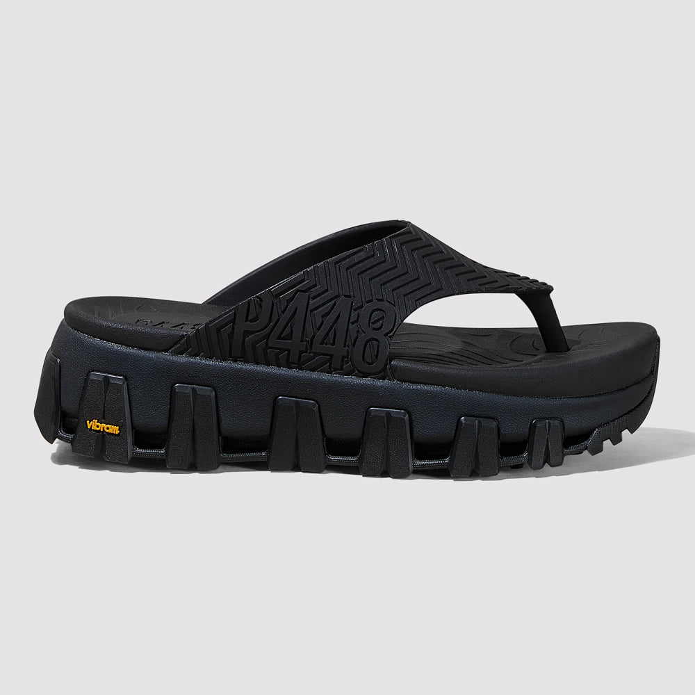 A P448 x Vibram® collaboration sandal crafted from bio-based materials with ergonomic comfort and textured herringbone details.