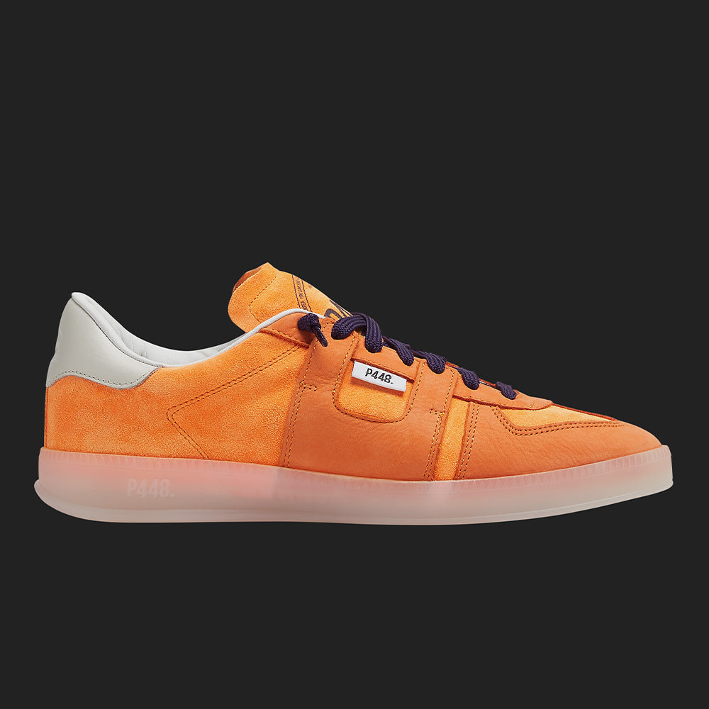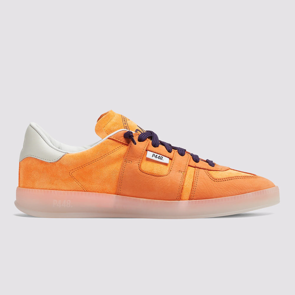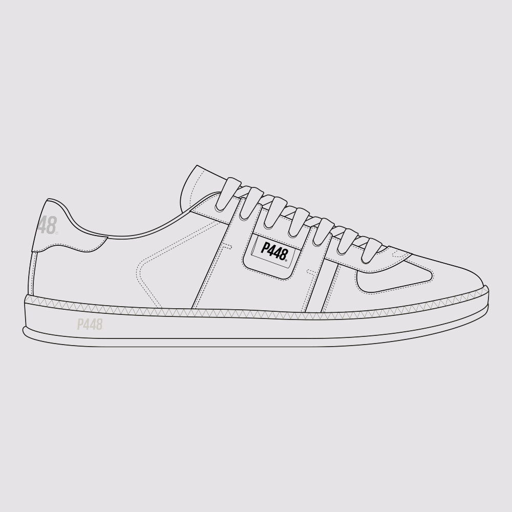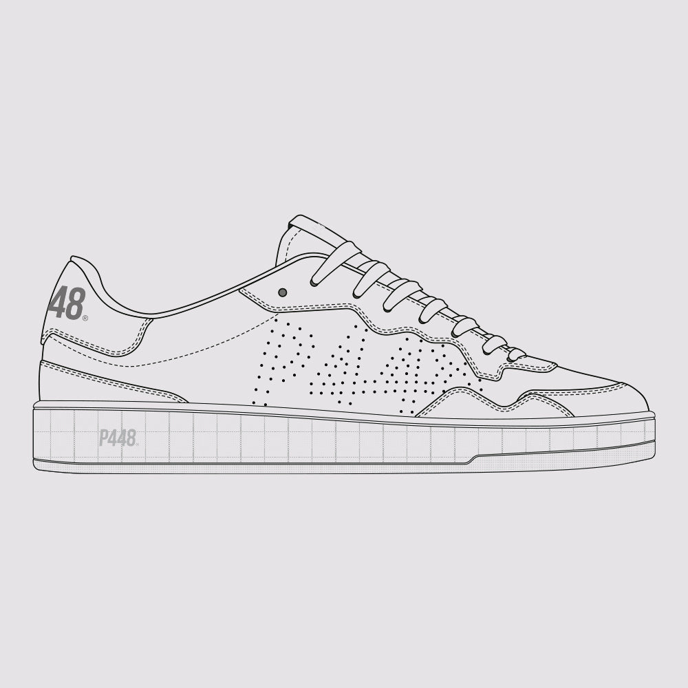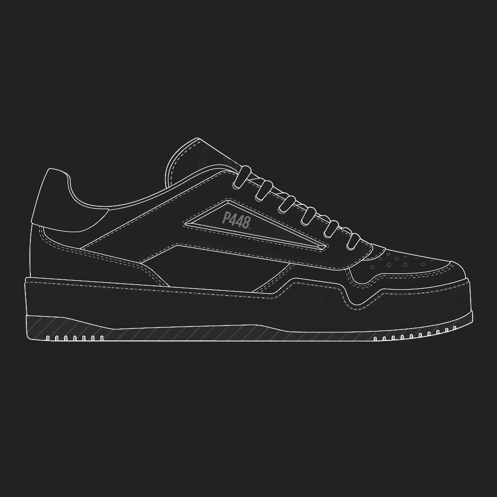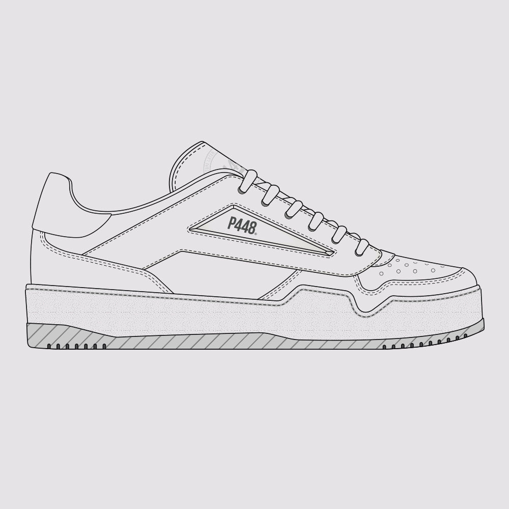 A low profile sneaker with statement details and directional trims in signature P448 style. Take your look courtside