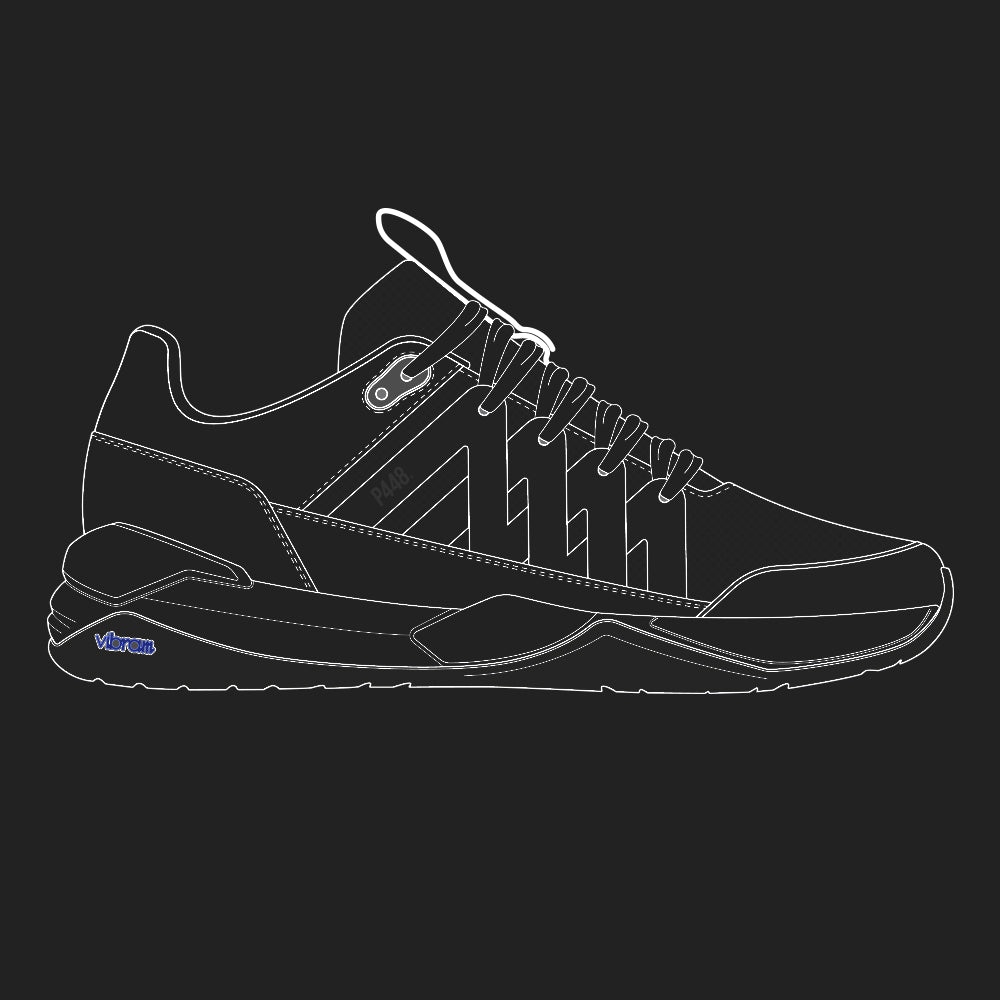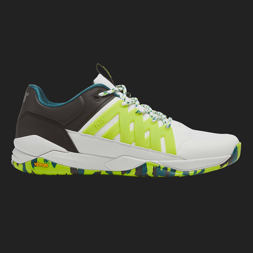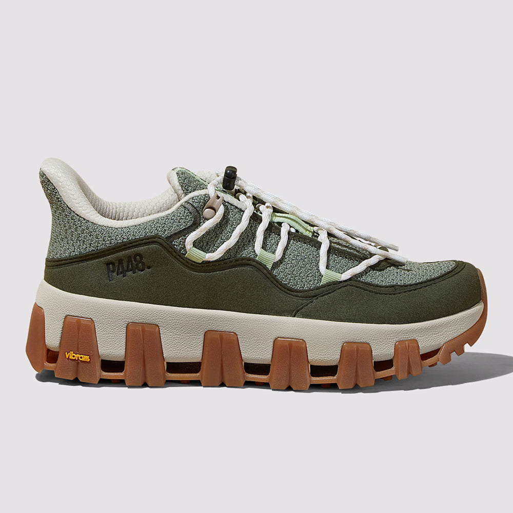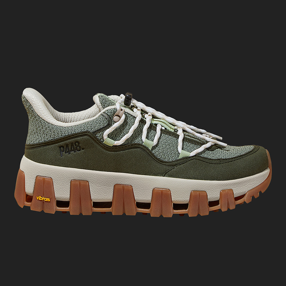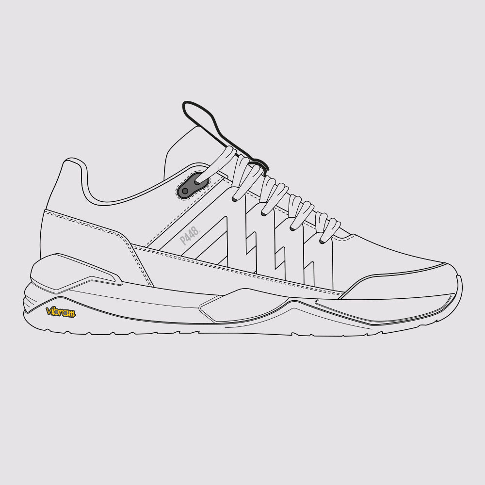 A P448 x Vibram® performance sport sneaker crafted from bio-based materials with ergonomic comfort, multi-directional traction and patented support features. Style, set, match.