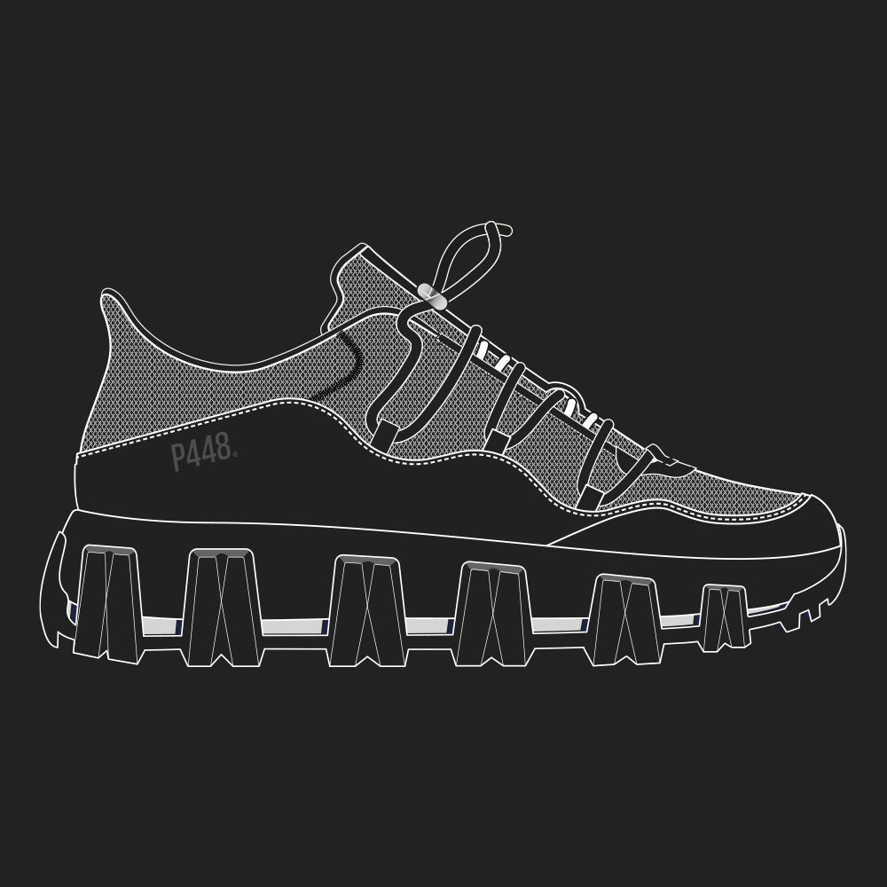 A statement silhouette with signature P448 boldness–from heel to toe, tongue and trims. Be noticed.