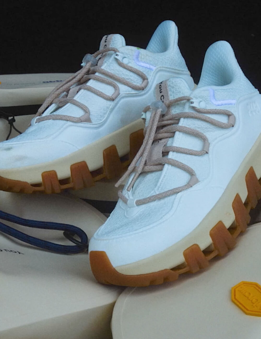 Each pair in this collection features a layered technical sole made from biobased and sustainable materials with a uniquely fashion-meets-performance rugged look.