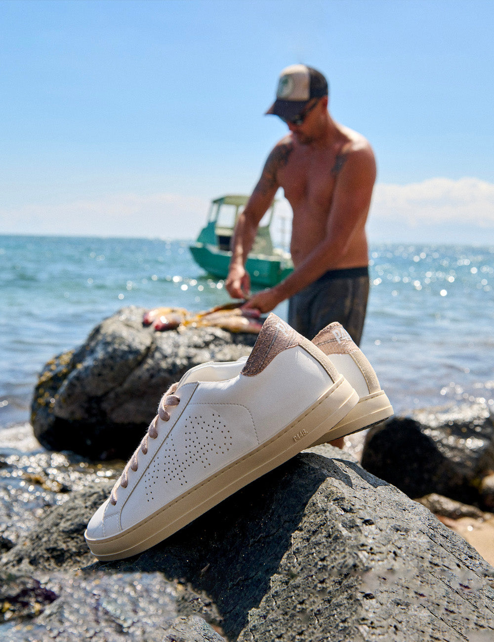 With the help of Conservation International and Moloka‘i fishermen, we sourced 2,000 taʻape skins from the island of Moloka‘i. Each John Taʻape sneaker created utilizes the leather of one taʻape.