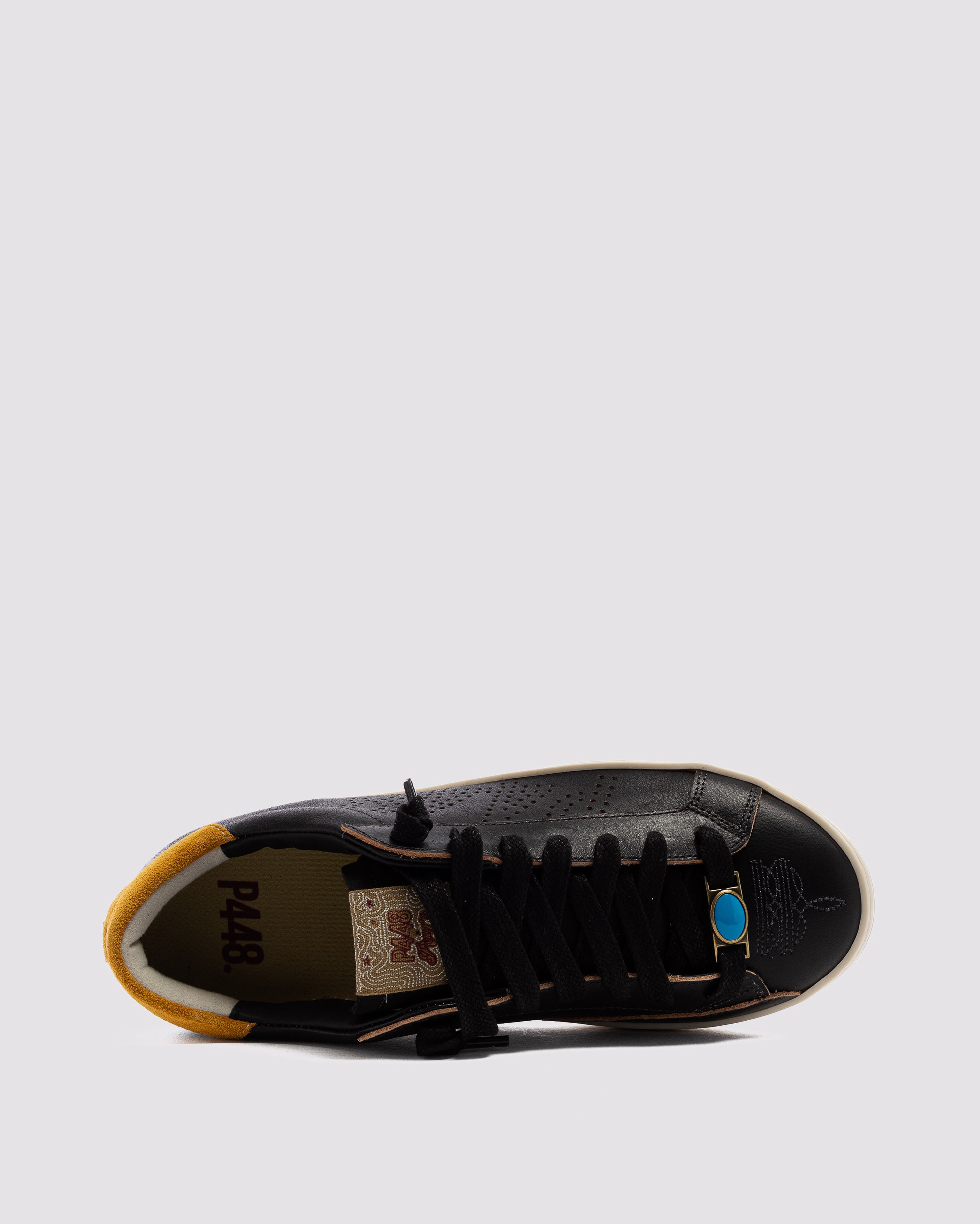 RELAXED AND UNCOMPLICATED. P448 x Ray’s John Dark Cherry is our iconic low top silhouette wrapped in dark red suede with contrast embroidery, a mustard yellow nubuck heel tab, red waxed cotton laces and vintage-inspired checkerboard treads. Modern Americana finishes like the debossed horse on the heel tab, American flag detail, vintage woven tongue label, antique brass lace ornament and turquoise stone lace pin make this pair perfect for hitting the hometown bar or city streets.