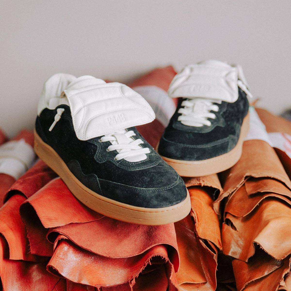 The Marte White/Green features all-over white leather, complemented by an olive green suede heel tab and trims and a white recycled leather patterned tongue. White laces and our signature P448 dark brown soles finish off the look.