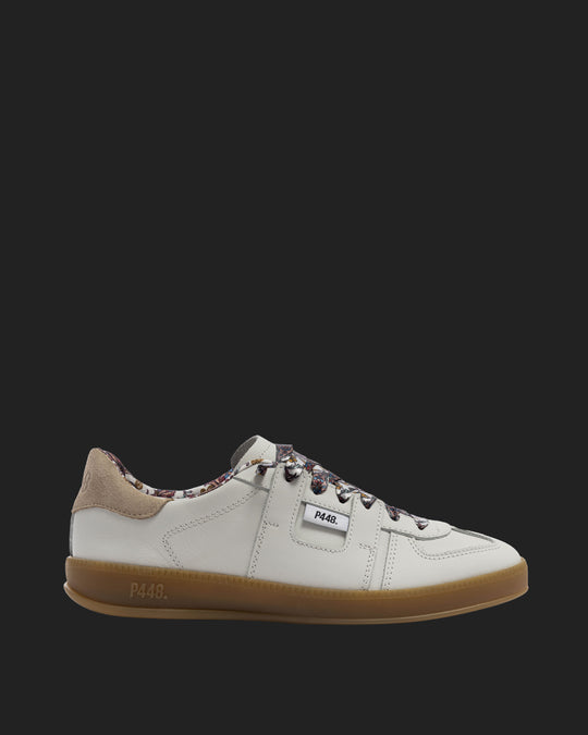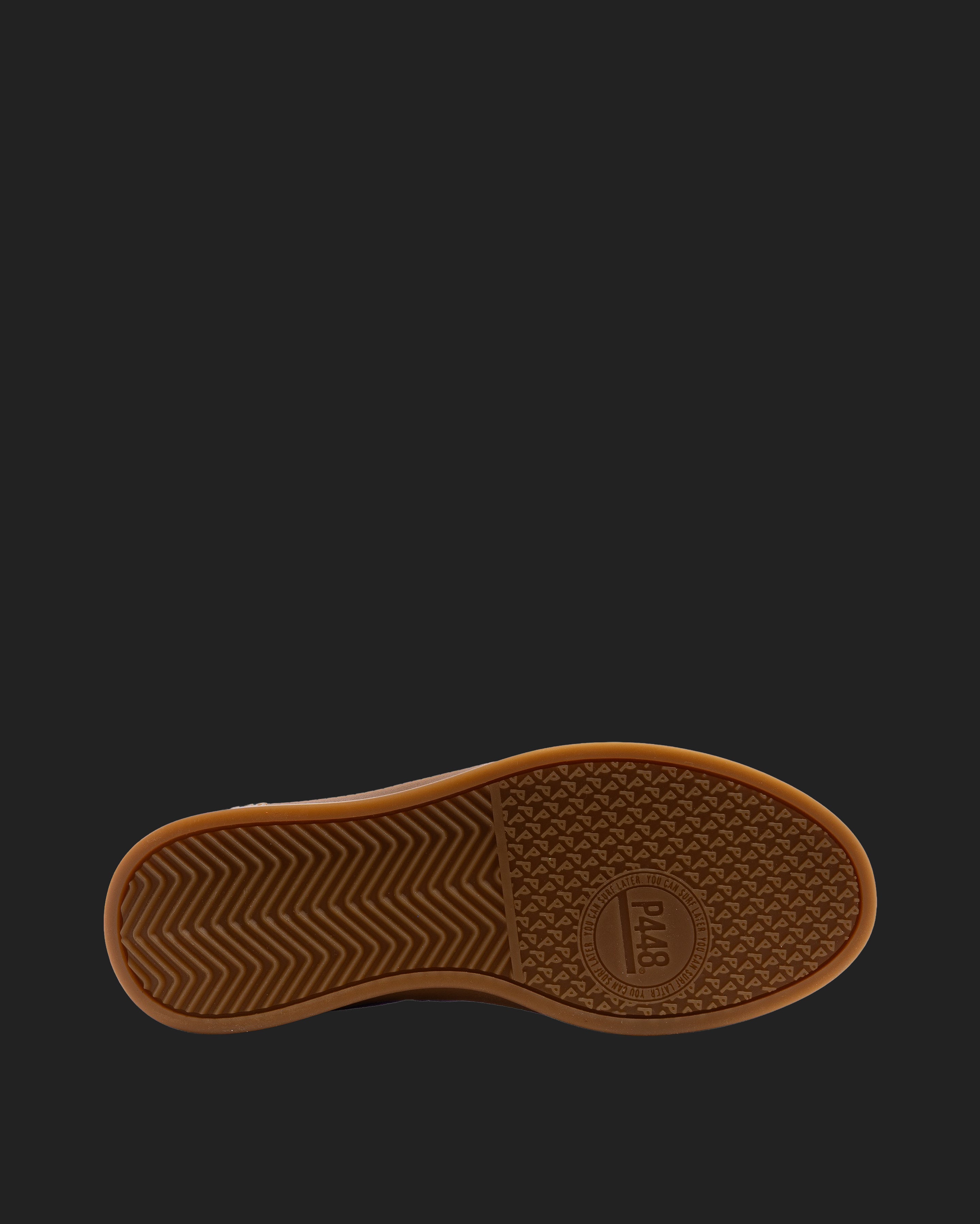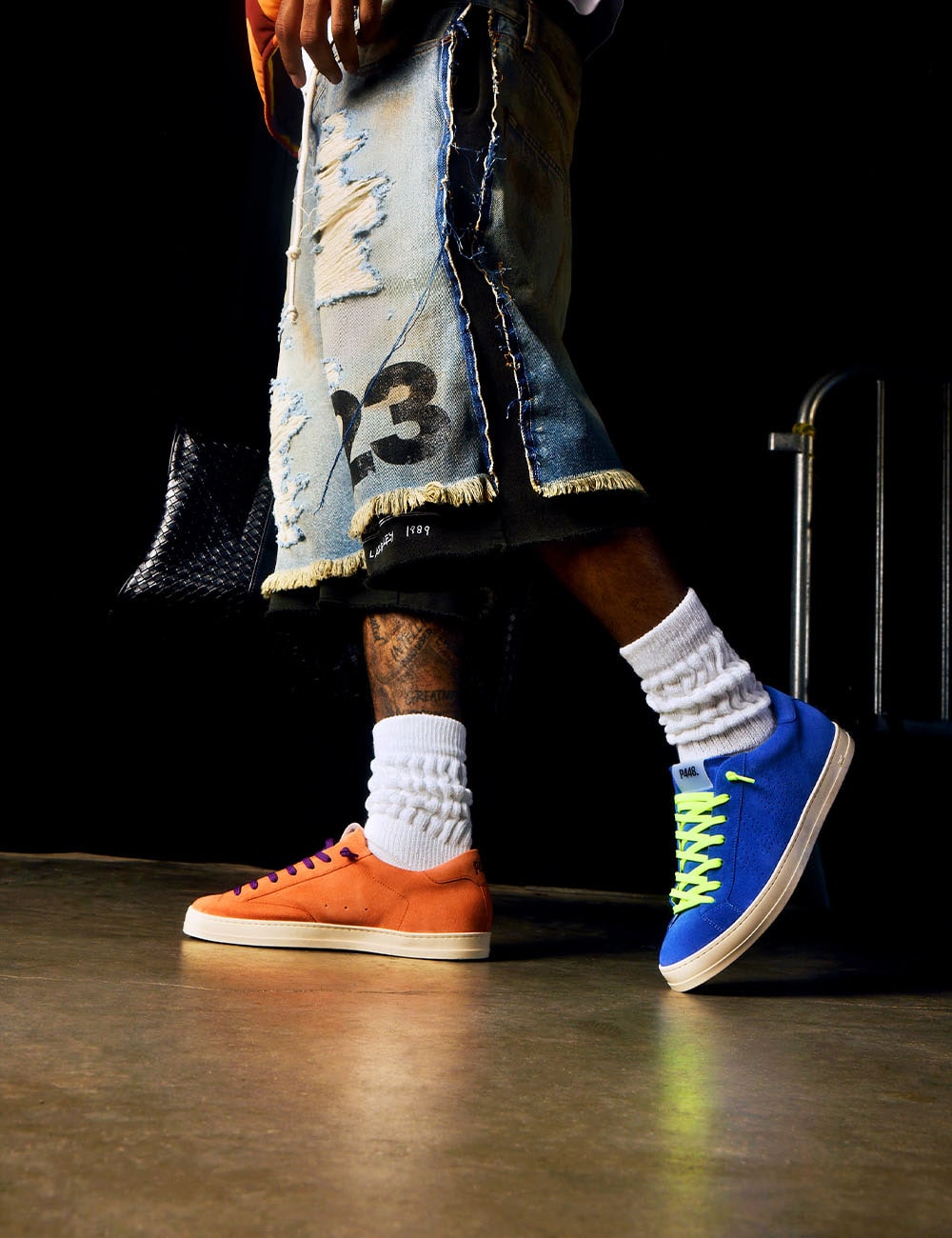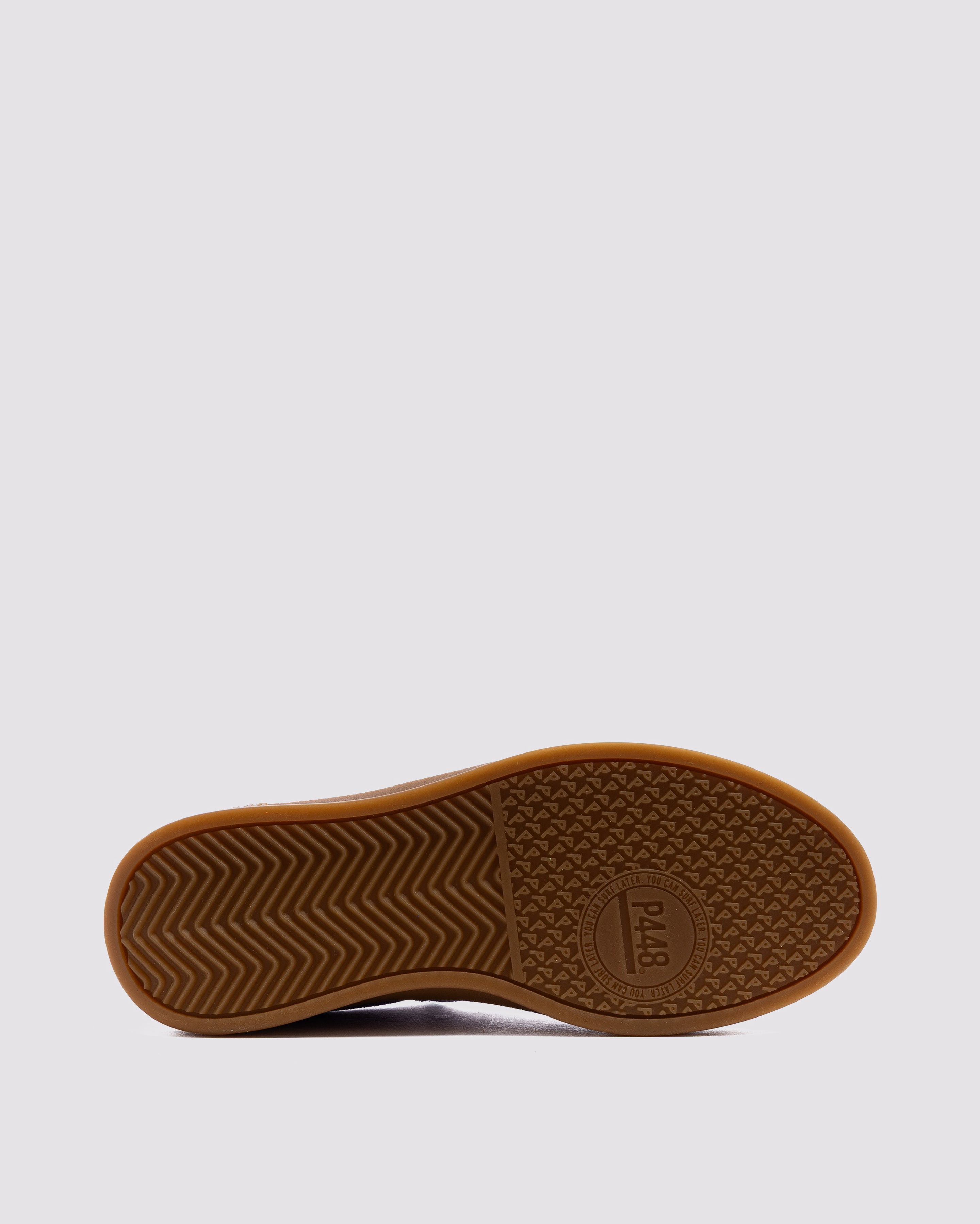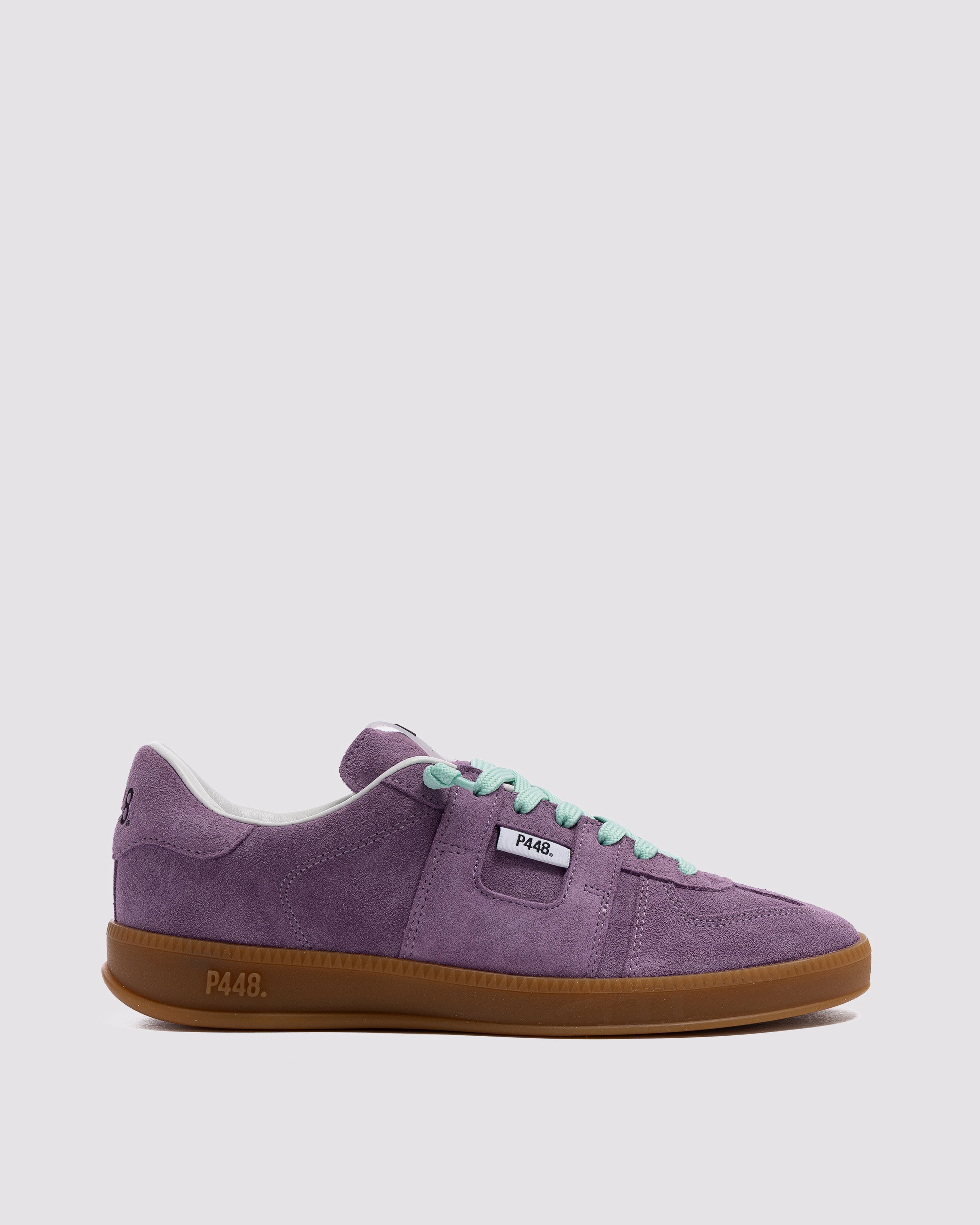 Both feature matching suede tongues, trims, toes, and heel accents. Light blue laces on one and orange laces on the other, along with our signature P448 rubber soles finished with black treads, tie it all together.