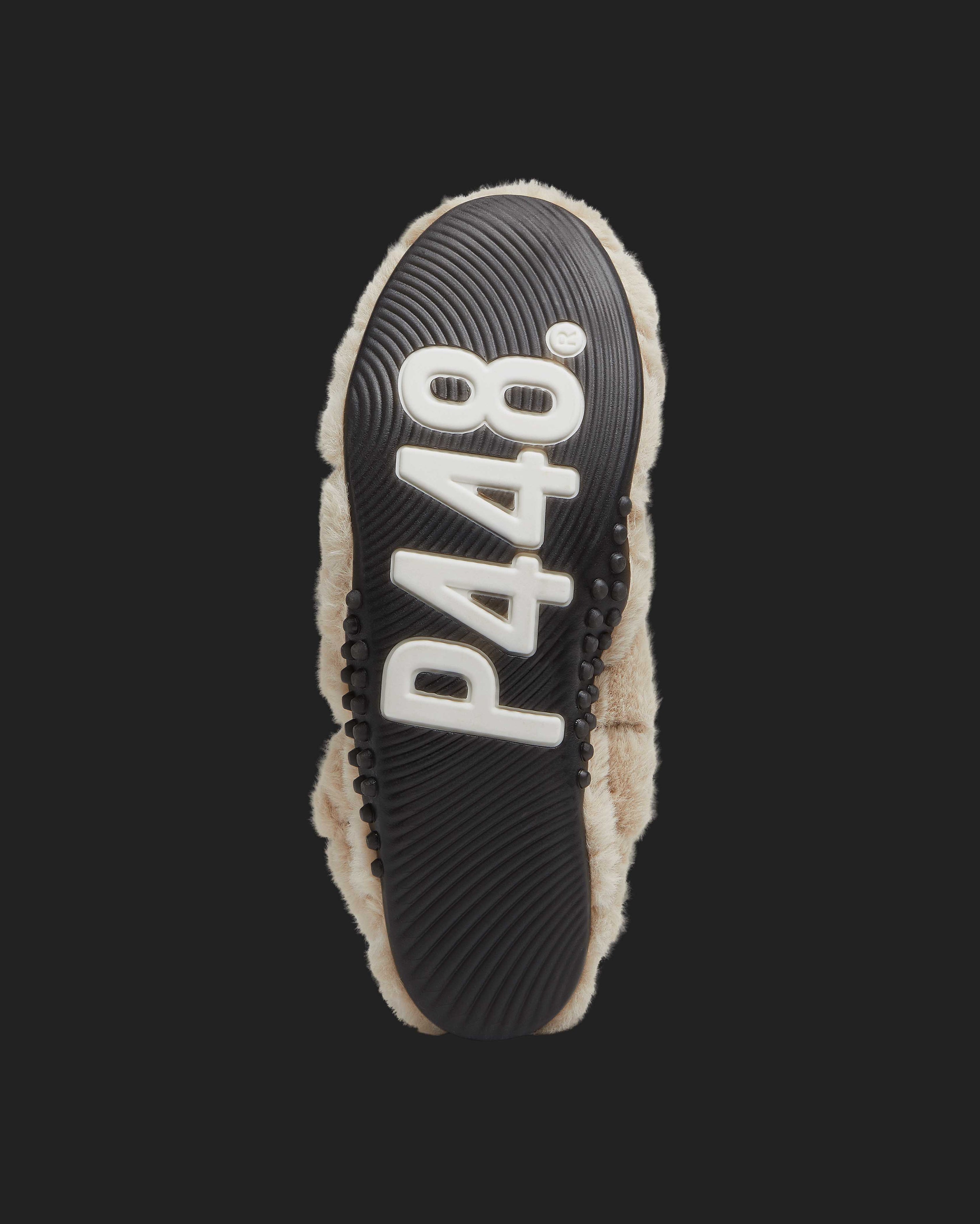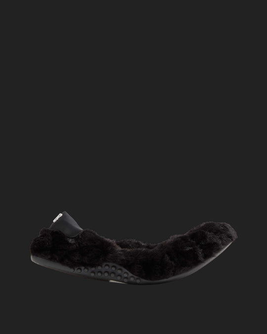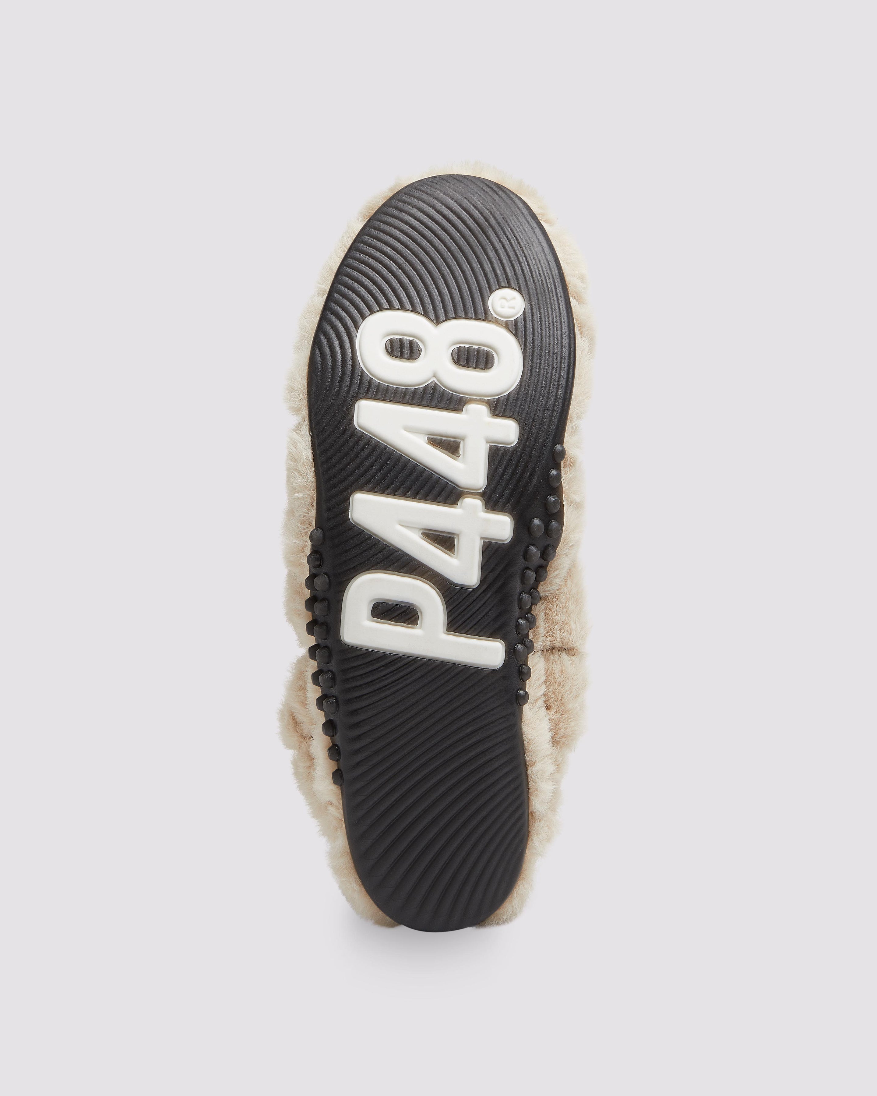 The Stella Fur Beige is the faux fur trim flat that always makes a statement. It features an all-over quilted taupe faux fur design with a black recycled leather heel tab. Our P448 raised black rubber soles off the look.