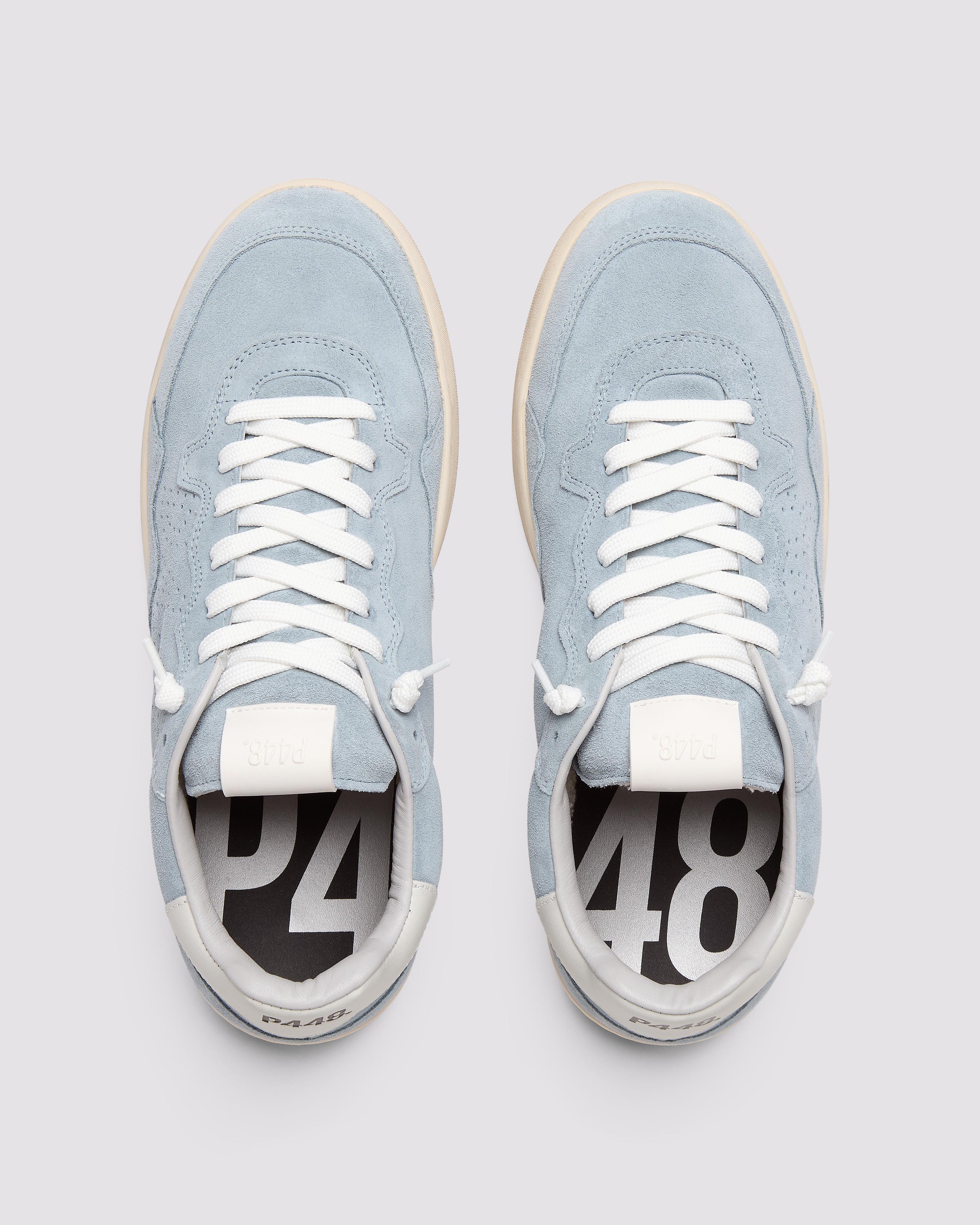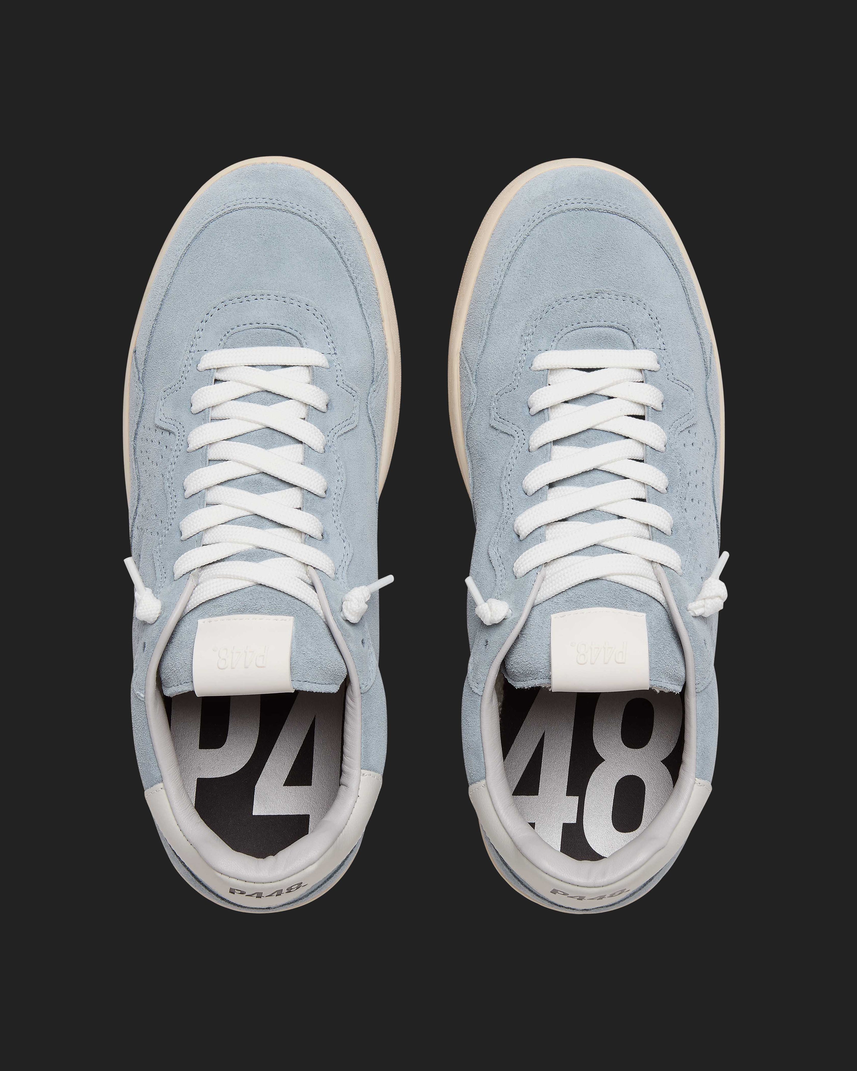 • Light blue suede upper with perforated P448 logo
