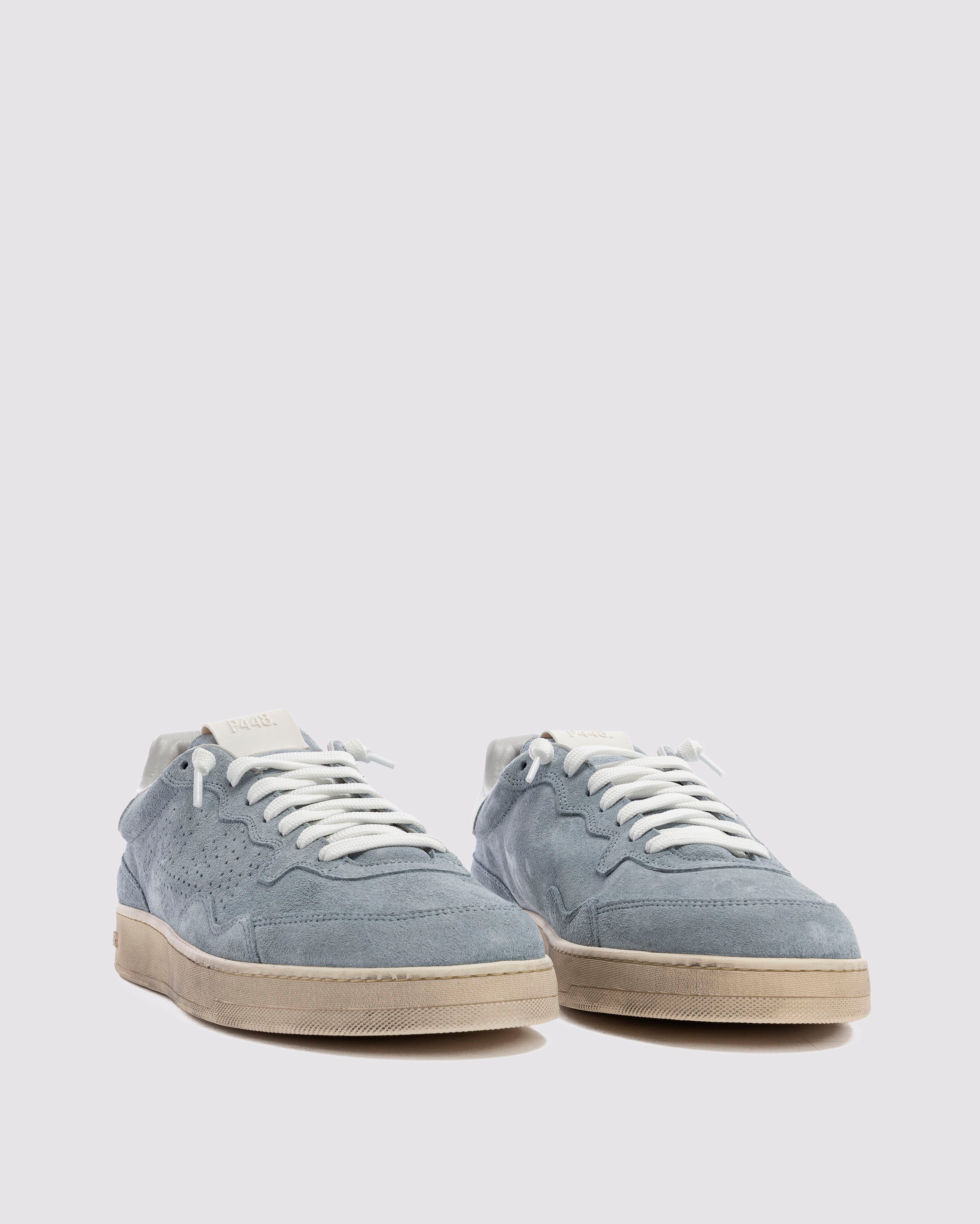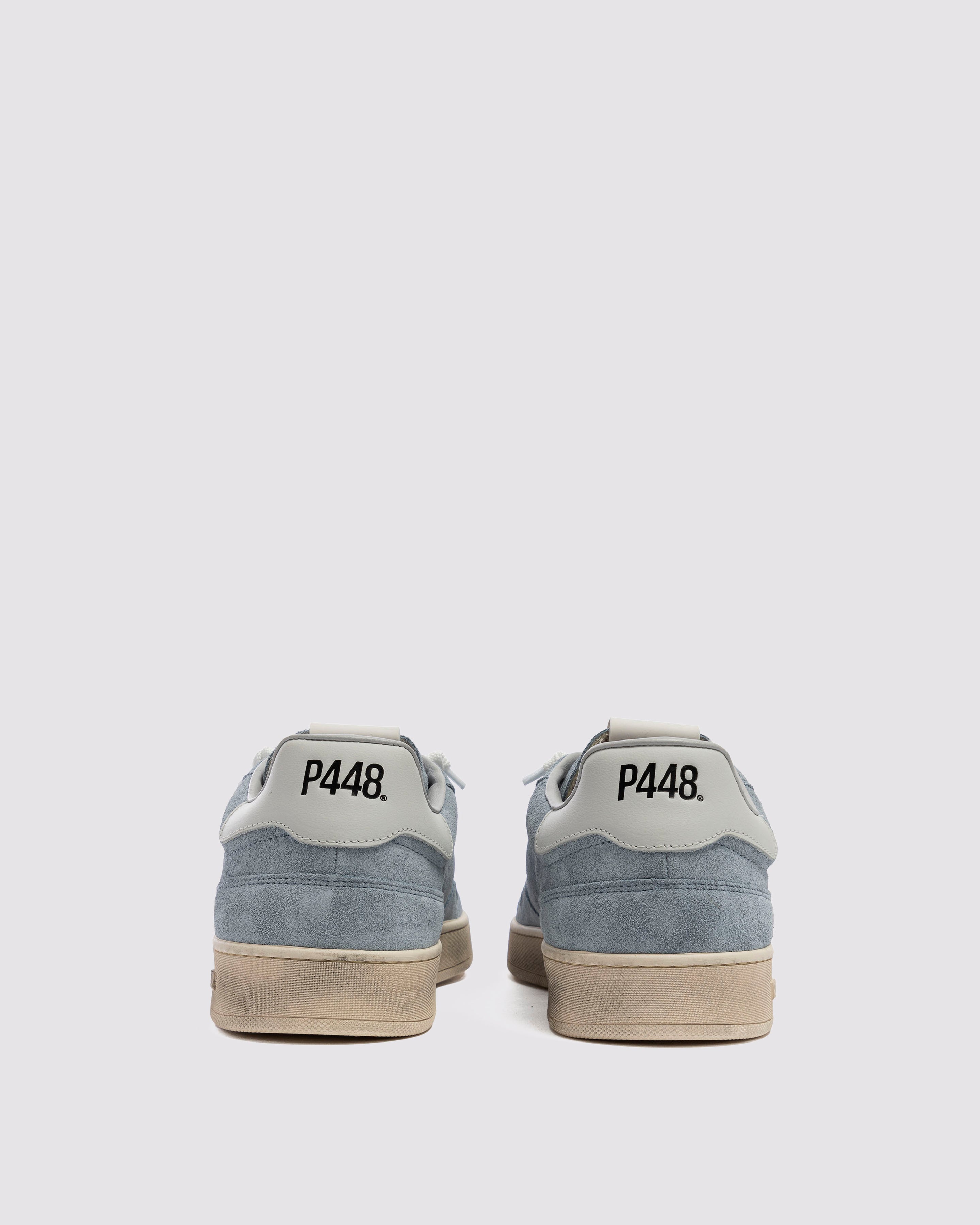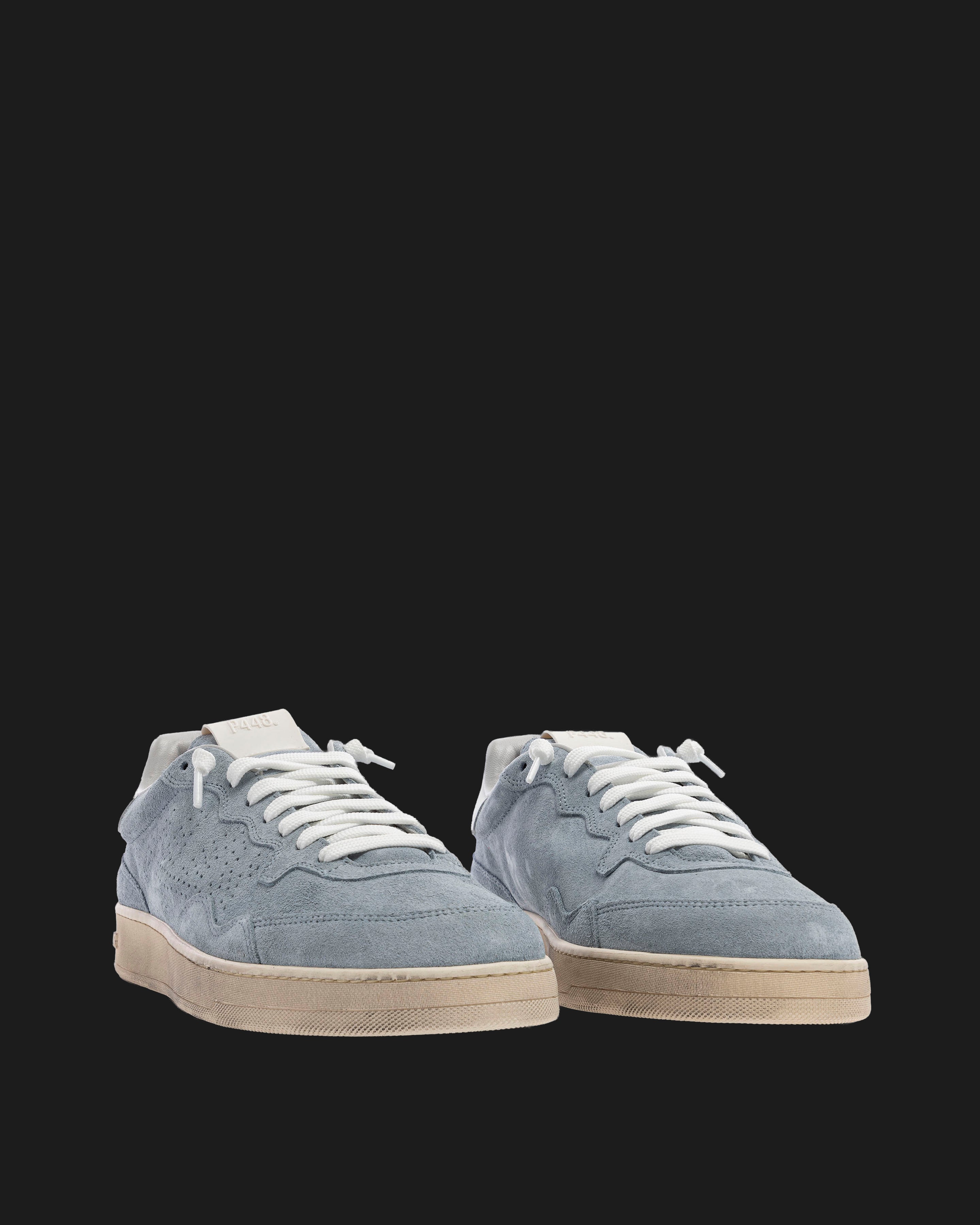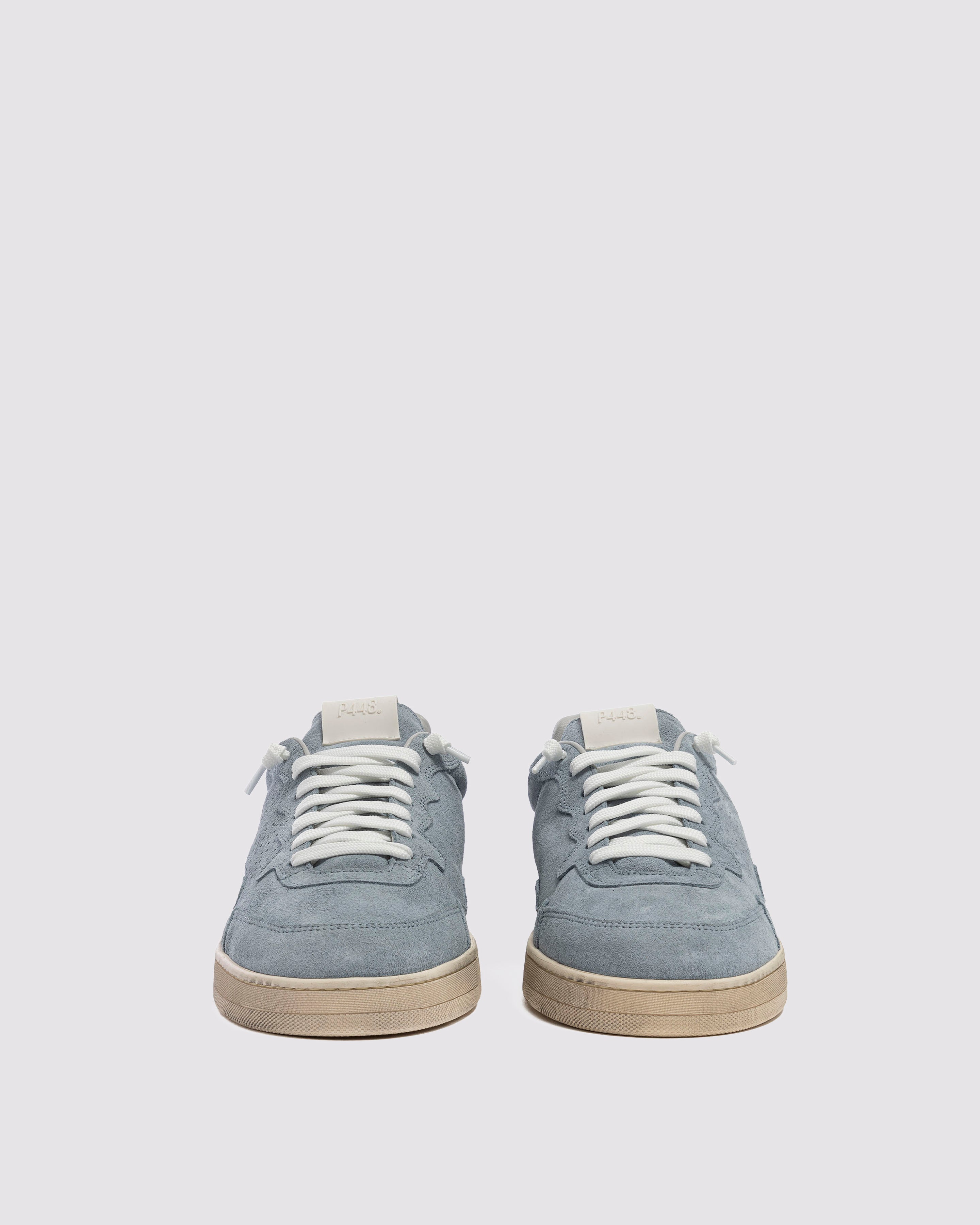 The Vert Storm features all-over light blue suede, accented by a beige leather heel tab and white laces. Our signature P448 hand-distressed rubber soles are crafted with skaters in mind, featuring a herringbone tread and pivot point for extra grip and ultimate comfort.