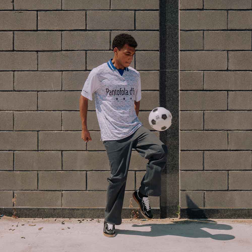 An homage to our Italian roots and celebration of fashion on and off the field. This collection of premium Pantofola d'Oro football jerseys is a masterpiece of its own, bringing together high‑quality Italian craftsmanship, nostalgic design and fashion‑forward fanwear. Pair these iconic jerseys with our football‑inspired pairs with retro silhouettes and sporty paneling.