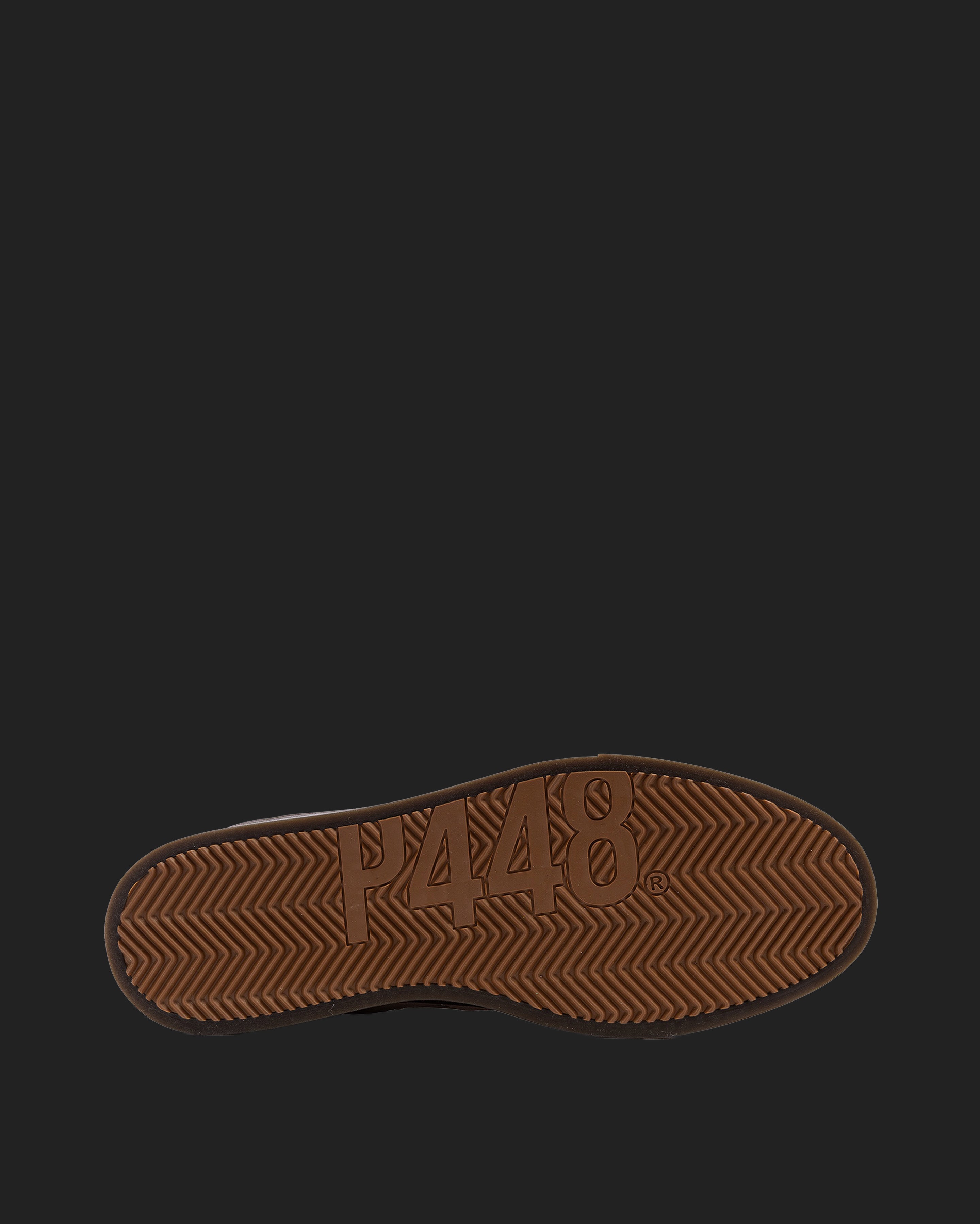 We recommend using a lightly damp cotton or microfiber cloth to gently brush dirt away. Ensure shoes are completely dry before wearing again and are not dried in direct sunlight or high heat sources to avoid cracking the leather. Condition the leather once a month to protect against damage so you can wear P448 for years to come.