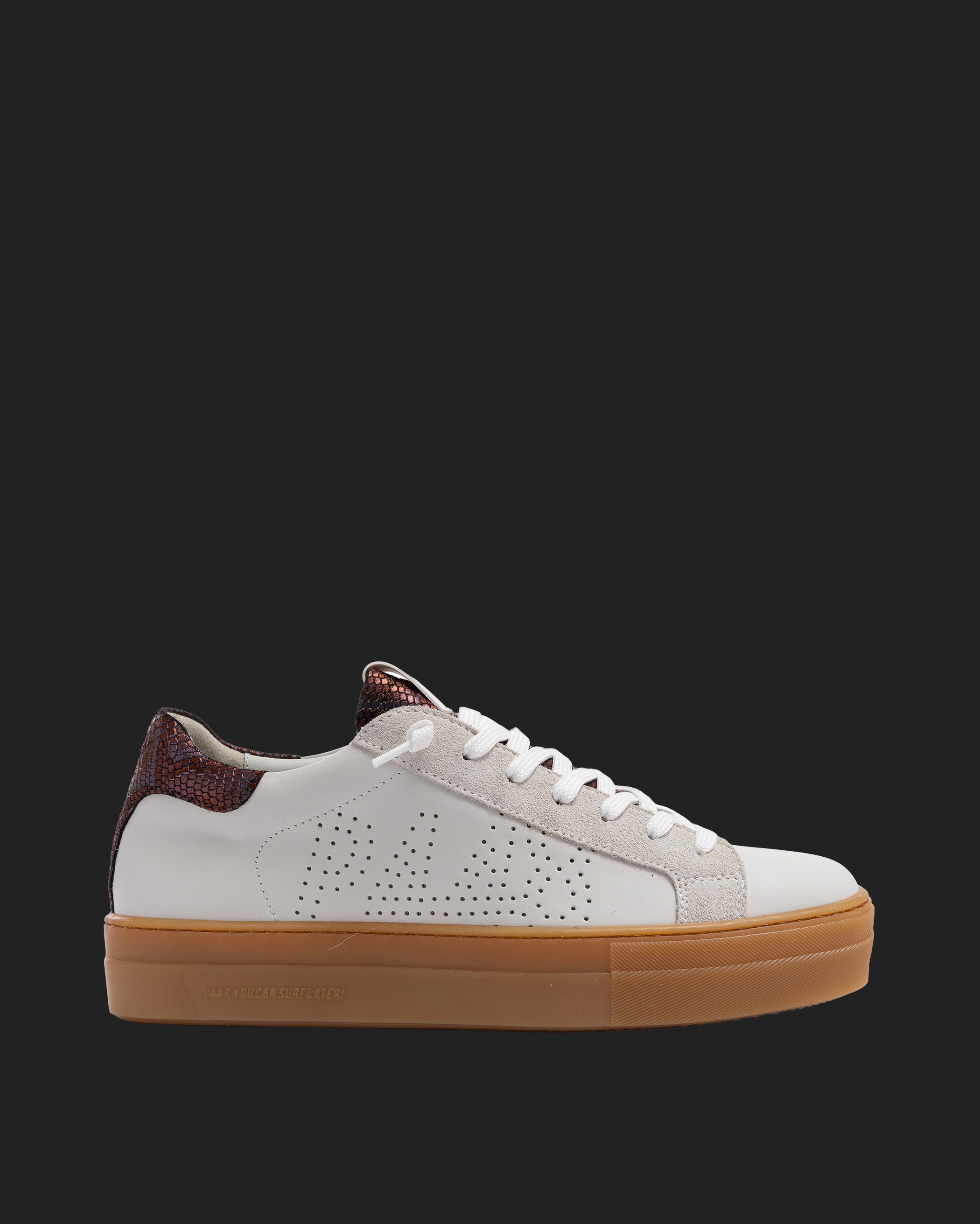 The Thea Zebra White is wrapped in cream leather with pink fabric paillette accents and a zebra-printed beige leather heel tab. White laces, our signature P448 hand-distressed platform rubber sole and cream tread ground the look. Swap in the extra pair of fuchsia laces for a pop of color. This playful platform runs small, so be sure to size up if you’re in between.